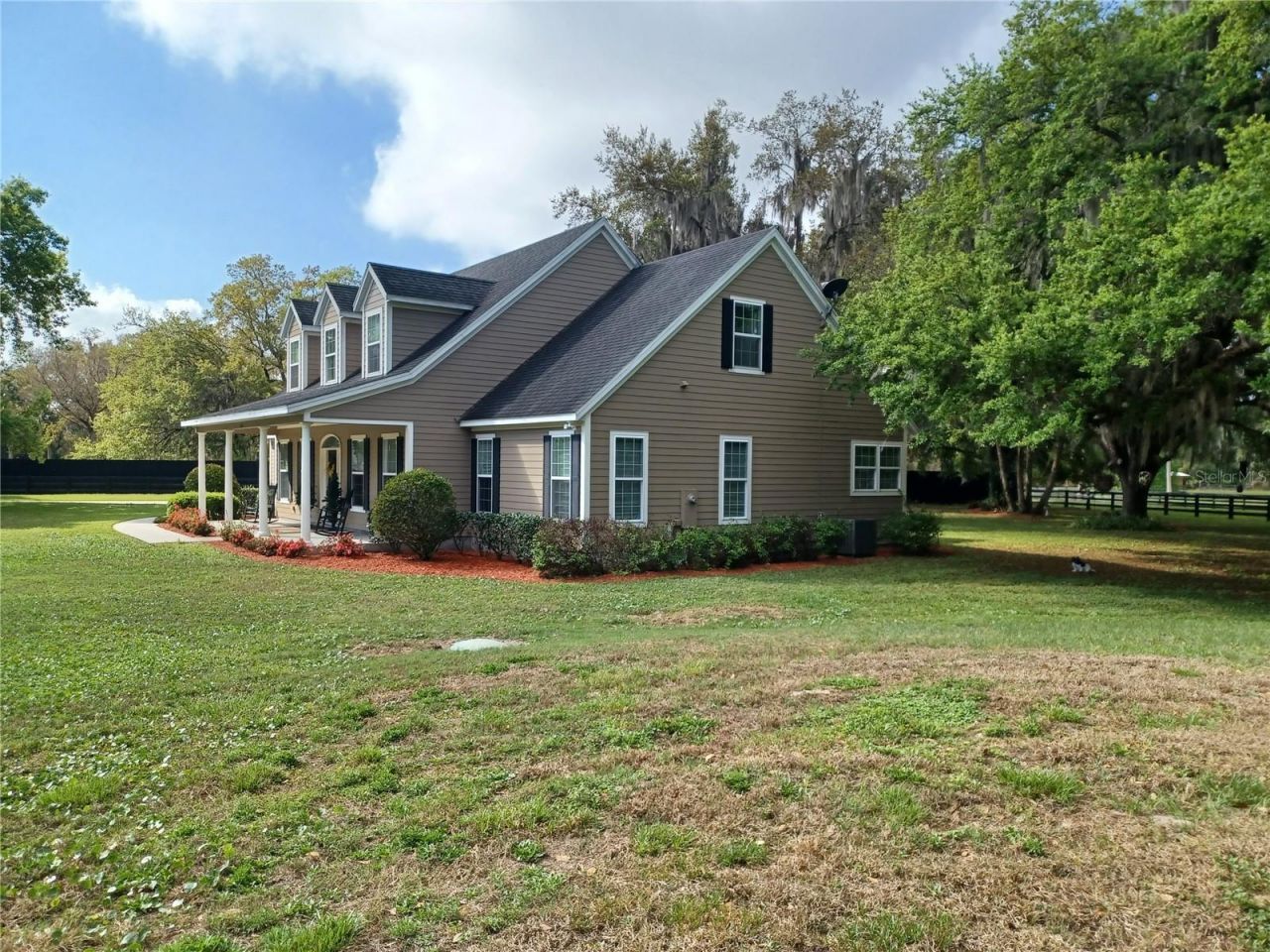 Custom built 3-bedroom 2.5 bath with office, nestled among huge oak trees, on 1.6 acres. Property is totally fenced with 3 board and an electric entry gate in Black Hammock. Home has 3,344 sq. ft. of living area, 839 sq. ft. garage with a car lift and large screened porch overlooking pasture land. Among the many features of this home include, spray foam insulation in roof and walls, coffered ceilings, central vacuum system, custom woodwork throughout, gas fireplace, hard wired security system, designer deluxe, soft close kitchen and utility rm. cabinets, twin A/C units and twin water heaters with water softener. Primary suite, located on the first floor is 16 X 16, large walk-in closet, double vanity, 6 ft. Kohler tub, shower and steam room. Located just minutes from Oviedo and easy access to major routes including S.R. 417.This home has been meticulously maintained and is move-in ready. Properties like this - offering acreage, upgrades and location, rarely come available.